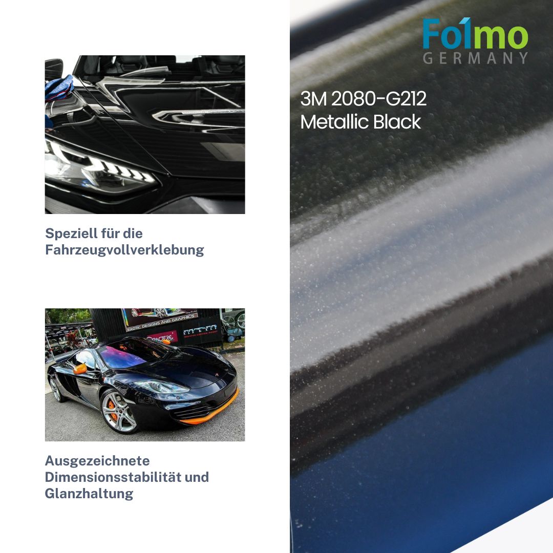 3M Autofolie 2080-G212 glanz metallic schwarz (30cm x 152cm Stück) + ultrafeines Microfasertuch