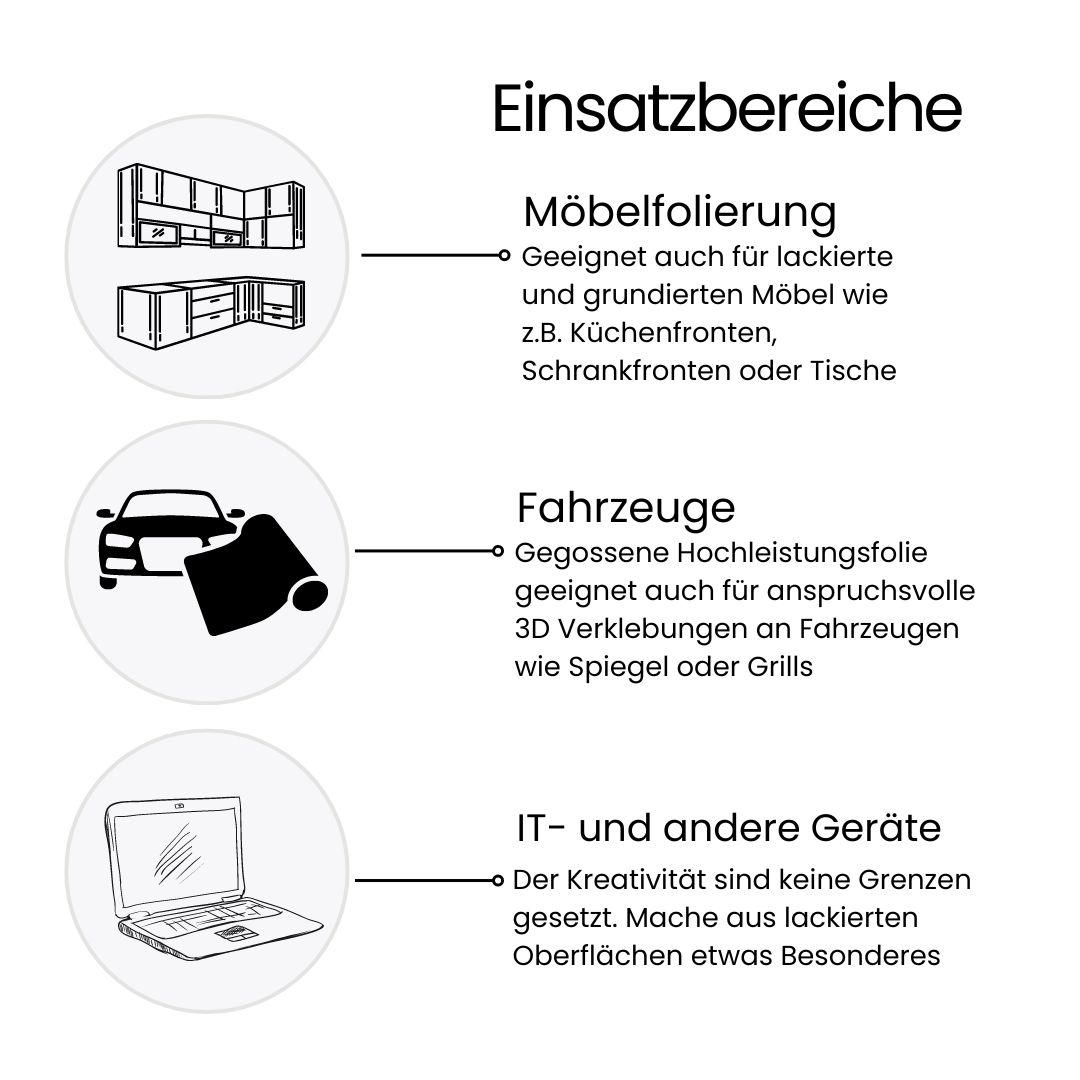 - Blasenfreie Folierung leicht gemacht: Dank der RapidAir®-Technologie mit integrierten Luftkanälen ist die blasenfreie Verklebung dieser Hochleistungsfolie besonders einfach – auch für Anfänger. Der repositionierbare Klebstoff sorgt dafür, dass die Folie während der Montage leicht korrigiert werden kann und dennoch optimalen Halt bietet.