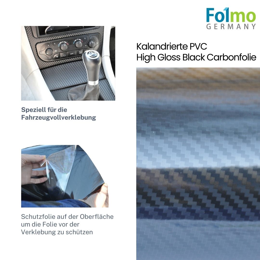 Folmo 5D High Gloss Black Carbonfolie (30cm x 152cm Stück) + ultrafeines Microfasertuch