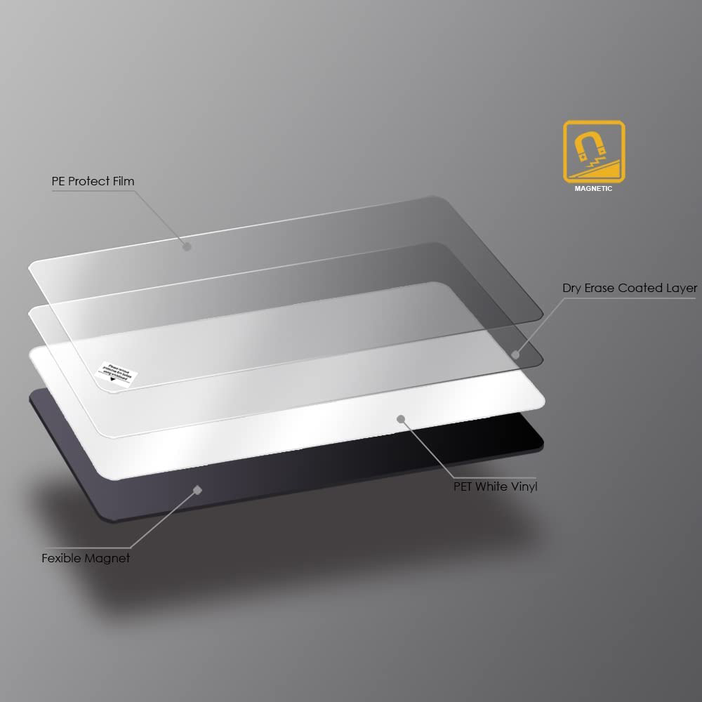 Die strapazierfähige und abwischbare Oberfläche der Magnetfolie ermöglicht es Ihnen, Ihre Notizen und Zeichnungen problemlos mit dem mitgelieferten Schwamm, trocken zu entfernen und das Board sauber zu halten. Egal ob Sie mit Whiteboard-Markern schreiben oder Magnete verwenden, unsere Folie bietet Ihnen maximale Flexibilität und Haltbarkeit.