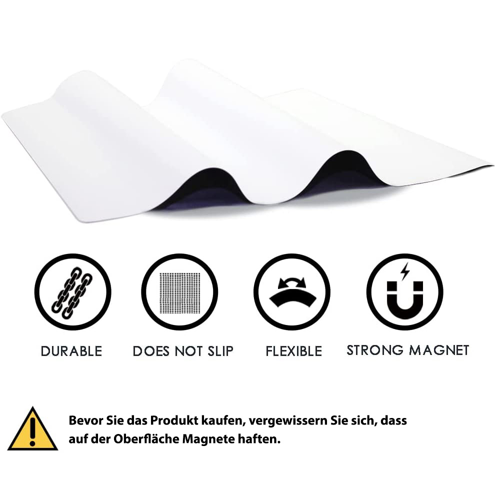 Diese Magnetfolie ist äußerst flexibel und kann leicht auf glatte Oberflächen die Magnete anziehen wie Kühlschränke oder Aktenschränke angebracht werden. Dank ihrer starken magnetischen Eigenschaften bleibt sie sicher an Ort und Stelle, ohne zu verrutschen. Die Folie kann auch problemlos zugeschnitten werden, um Ihren individuellen Bedürfnissen gerecht zu werden.